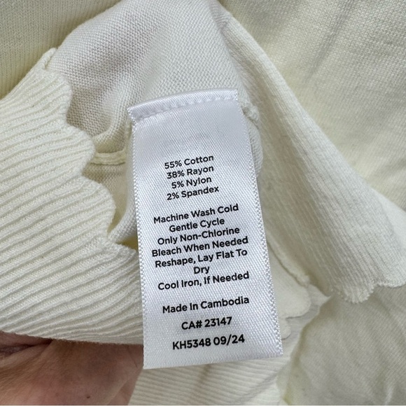 NWT Talbots Ivory pullover Scalloped Trim Sweater ladies top Sz Medium