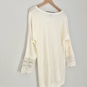 NWT Talbots Lace 3/4 Sleeves Tunic Length Scoop Neck Top White Ivory Medium