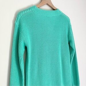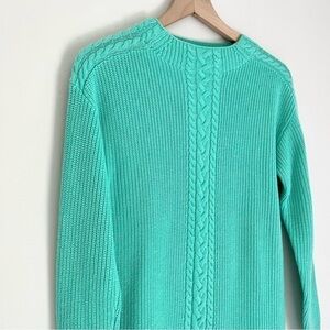Talbots women’s lambs wool cable knit detail sweater in a teal blue and green color. Size small petite.