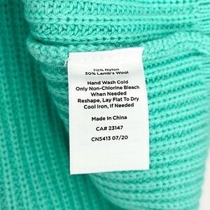 NWT Talbots Lambs Wool Cable Knit High Neck Sweater Teal Blue Green Small Petite