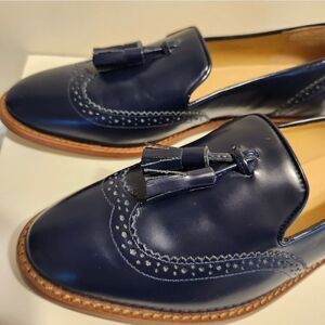NWT Talbots Leighton Blue Polished Leather Tassel Brogue Loafers Sz.6.5 Ret $139