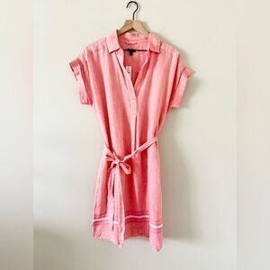 NWT Talbots Linen Popover Shirt Dress in Peach with Stripe Detail - Size M