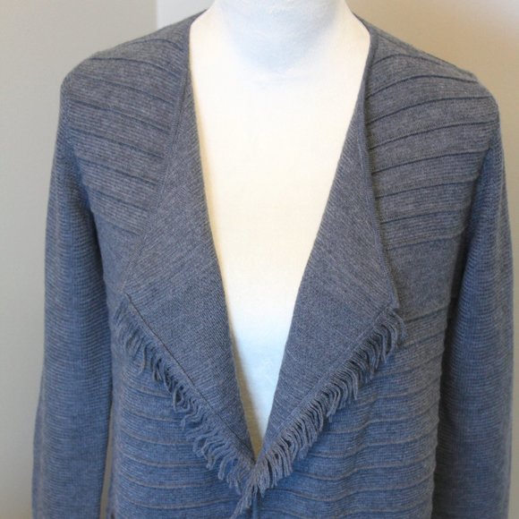 NWT || Gorgeous Merino Wool Open Front Cardigan || Fringe Detail on the Front || Elegant Ribbed Detail on Front of Sweater || Excellent Condition || Smoke-free and Pet-free Home || Cardigan is Warm.