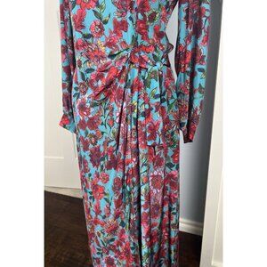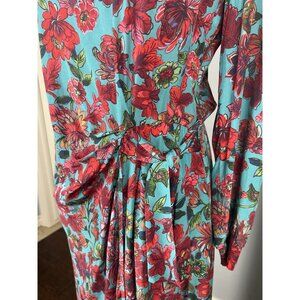 NWT Talbots Midi Dress Floral Full Sleeve Faux Wrap Drape Front Tie Dress Size 8