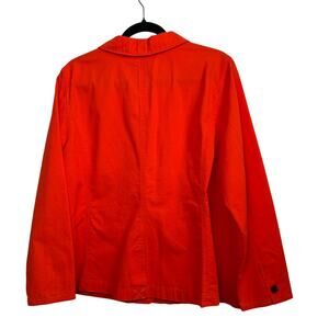 Style tags: modern utility jacket, safari jacket, contemporary workwear jacket, barn jacket, chore coat, orange jacket, coral jacket, four pocket, button front, preppy workwear, coastal grandmother, old money, clean girl, autumn jacket, structured jacket