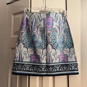 Brand new with tags, size 2. All over print, A-line style. Waist measures approximately 15 inches, length 19 inches