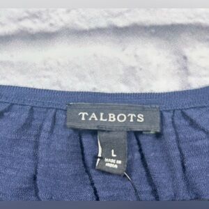 This elegant navy blue sundress by Talbots showcases a round neckline and charming puff eyelet sleeves, ideal for both casual and work occasions. The midi length and soft, flowing fabric offer a comfortable and stylish fit, making it a versatile wardrobe staple.