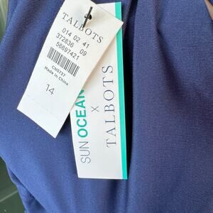 Keywords: Talbots swimsuit top, one shoulder swim, colorblock swimwear, pink navy bathing suit, modest swim top, Sun Ocean Sand, active swimwear, sporty chic, summer vacation outfit, size 12 swim