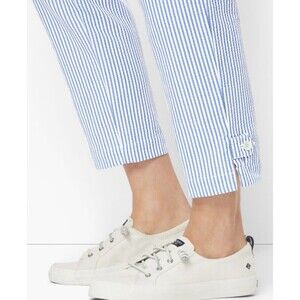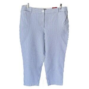 NWT Talbots Pants Womens 14 Blue White Seersucker Perfect Crop Striped Ankle