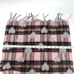 NWT Talbots Plaid 100% Wool Fringe Scarf Reversible Pink Gray