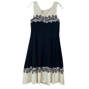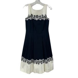 NWT Talbots Pleated Sleeveless Floral Fit & Flare Dress Cream Black Womens 2