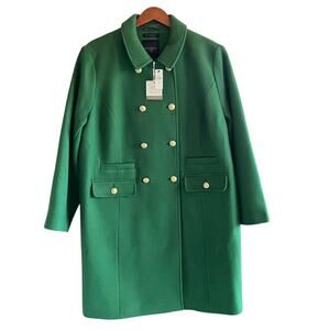 NWT Talbots Plus Albury Coat in Green. Size 18W. Wool blend fabric woven in Italy. Double breasted with gold Talbots metal buttons.