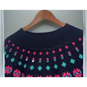 This NWT Talbots Navy Sweater Dress in size 2X features a classic mock neck and long sleeves, making it a versatile and comfortable choice for casual occasions. The knee-length dress is adorned with floral accents, adding a touch of charm to the solid blue color. Made from a blend of polyester and acrylic, this knit sweater dress is machine washable and stretchy for a comfortable fit. Perfect for the winter and fall seasons, this Talbots dress is a stylish and practical addition to any woman's wardrobe.