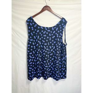 NWT Talbots Plus Womens Sleeveless All Over Floral Tank Blouse Black Blue Sz 3X