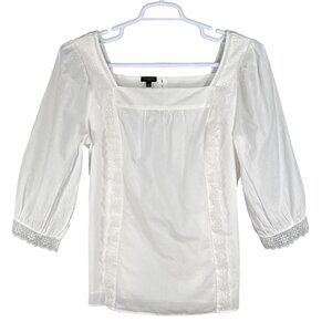 white blouse lace trim top plus size clothing cotton blouse Talbots top square neck blouse 3/4 sleeve shirt casual top elegant blouse women’s cotton top India-made blouse lace detail shirt breathable fabric top