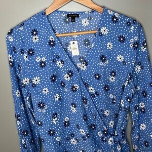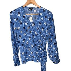 NWT Talbots Poet Sleeve Wrap Top Flowers & Dots
