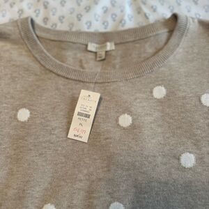 NWT Talbots Polka Dot Tan and White Sweater Size Large Petite