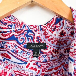 NWT Talbots Red White & Blue Paisley Cotton Button Down Shirt Sz XL