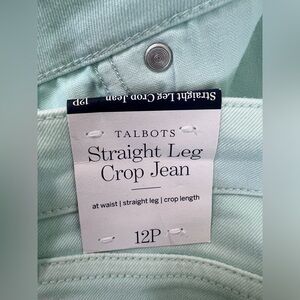 NWT Talbots STRAIGHT LEG CROP JEANS - Size 12 Light Green