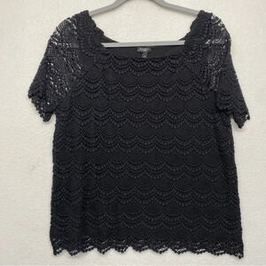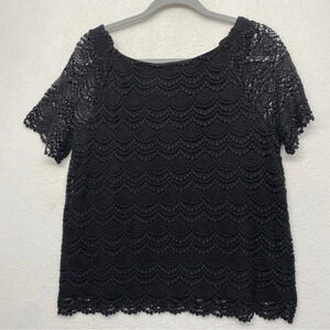 NWT Talbots Scallop Lace Blouse Black LP PL