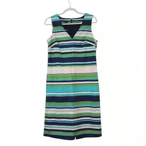 NWT Talbots Sheath Midi Dress Size 8 V-Neck Preppy Stretch Colorful Striped