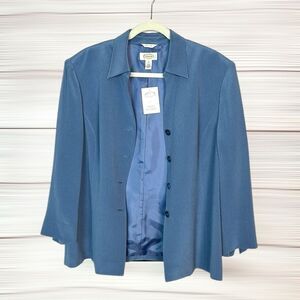 NWT Talbots Silk Blue Blazer Jacket Lined V-neck size 16 Vintage Excellent