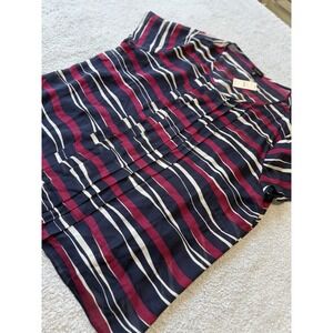 NWT Talbots Silk Career Pleated Top Red Blue White Strip Size 18
