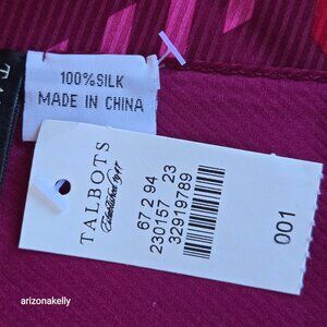 NWT Talbots Silk Houndstooth Pink Purple Square Scarf
