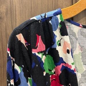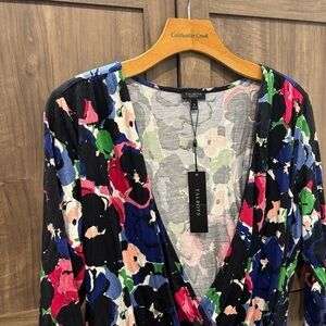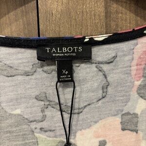 NWT Talbots Size XP Faux Wrap Top Black Floral 3/4 Sleeves Jersey Knit Stretch