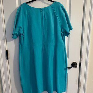 NWT Talbots Stretch Short Sleeve Sheath Turquoise Zipper Back Dress