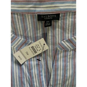 NWT Talbots Striped Split Neck Poplin Tie Sleeve Cotton Blouse Top Size 1XP