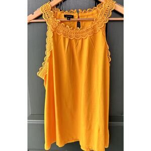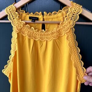 NWT Talbots Sunny Yellow Cotton Halter Tank with Embroidery Lace Trim, Size M
