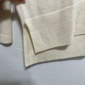 Warm, cozy, soft, casual, summer sweater, beach cover up, merino wool sweater, wool pullover, mockneck sweater, cream sweater, neutral sweater, minimalist style, cozy knitwear, classic wardrobe staple, luxury wool top, fall fashion, winter outfit, elegant sweater, timeless pullover, soft merino knit, office wear, holiday party outfit, brunch outfit, casual chic, cold weather style, capsule wardrobe, elevated basics, warm cream knit, layering piece, preppy style, knit mock neck, business casual, Sunday brunch, dinner date, winter travel outfit, gift idea for her