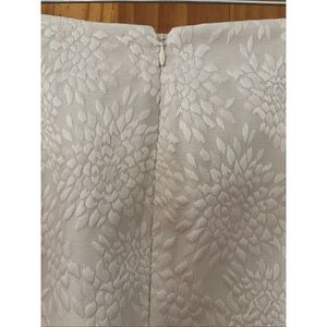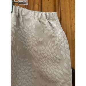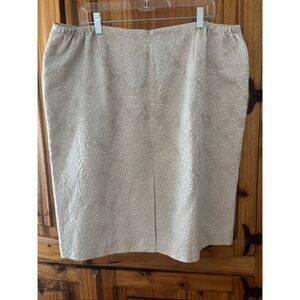 Fully lined skirt with a back zipper, elastic panels at the waist and a raised texture all over. Waist measure is 38 inches. Length is 24.5 inches.