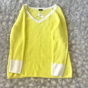 NWT Talbots V-Neck Knit Sweater, Plus Size, Yellow and White Pullover, 1X