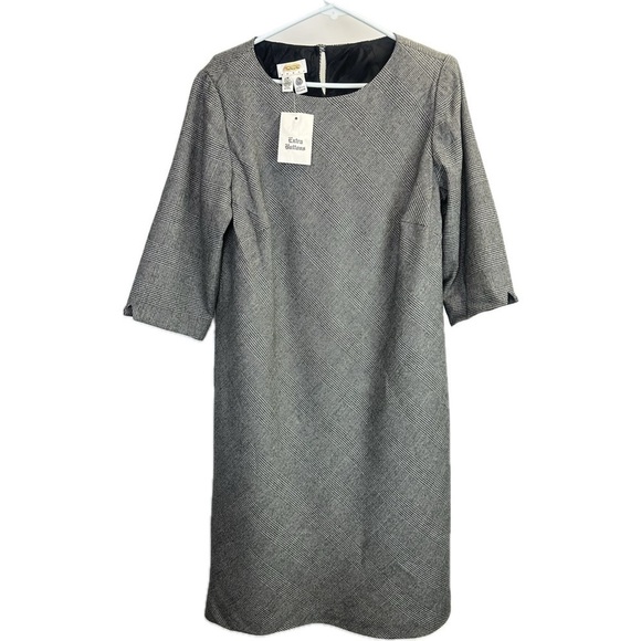 NWT Talbots Woman 100% Pure Wool Houndstooth Quarter Length Sleeves Dress Sz 12W