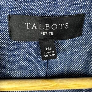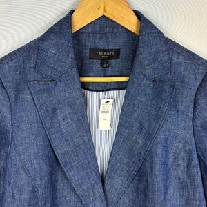 NWT Talbots Women 100% Linen Blazer Sz 16P Blue Chambray Preppy Classic Business