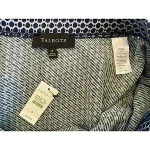 NWT Talbots Women's A-Line Skirt Size 8 Navy Blue White PolkaDot Pull-On Stretch. Condition is New with tags. Shipped with USPS Ground Advantage.