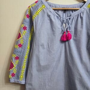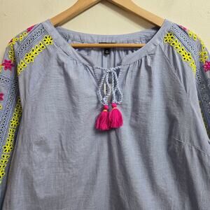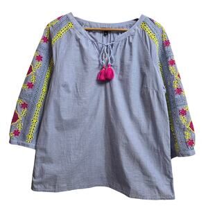 NWT Talbots Womens Boho Cottagecore Peasant Coastal Cowgirl Embroidered Top M