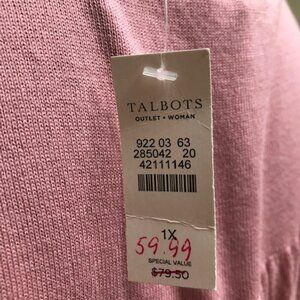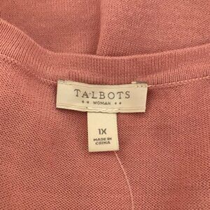 NWT Talbots Women's Layered Look Pink Sweater With polka dot mock shirt trim 1X