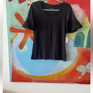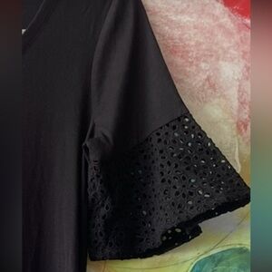 NWT Talbots Women's Medium Black Eyelet Short Sleeve T Shirt Pullover Top