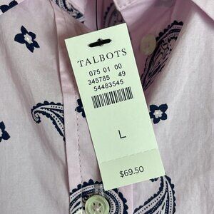 NWT Talbots Women's Size L Pink Blue Paisley Long Sleeve Button Down Shirt