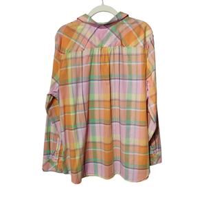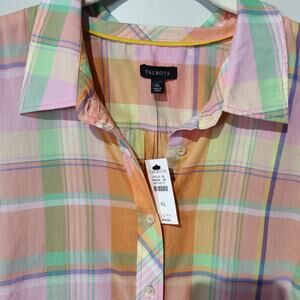NWT Talbots Women's Sz XL Peach Pastel Plaid Button Up Shirt Lightweight Spring
