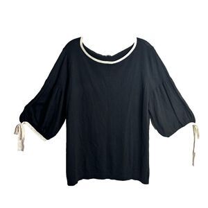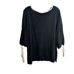 NWT Talbots Womens Tie Juliet Balloon Sleeve Tight Knit Sweater Black Plus 2X