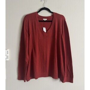 NWT Talbots XL V Neck Knit Top Pullover Rustic Orange Cotton Preppy Casual