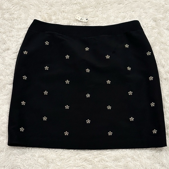 NWT Talbots black knee length skirt with faux pearl bead embellishments.