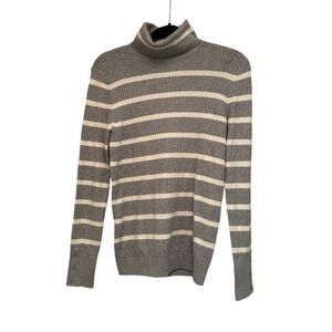 NWT Talbots grey with cream striped turtleneck sweater - size s