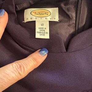 NWT Talbots size 12P, women’s polyester shift dress midi, purple in color.