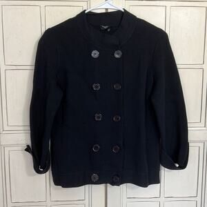 New with tags Talbots size petite medium PM black sweater like blazer or jacket. Buttons down the front. Measures 19” from armpit to armpit and 23” long.