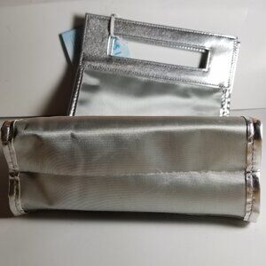✅NWT Tall Silver Fabric Biosilk Cosmetic Bag with Clear Window. Velcro closure